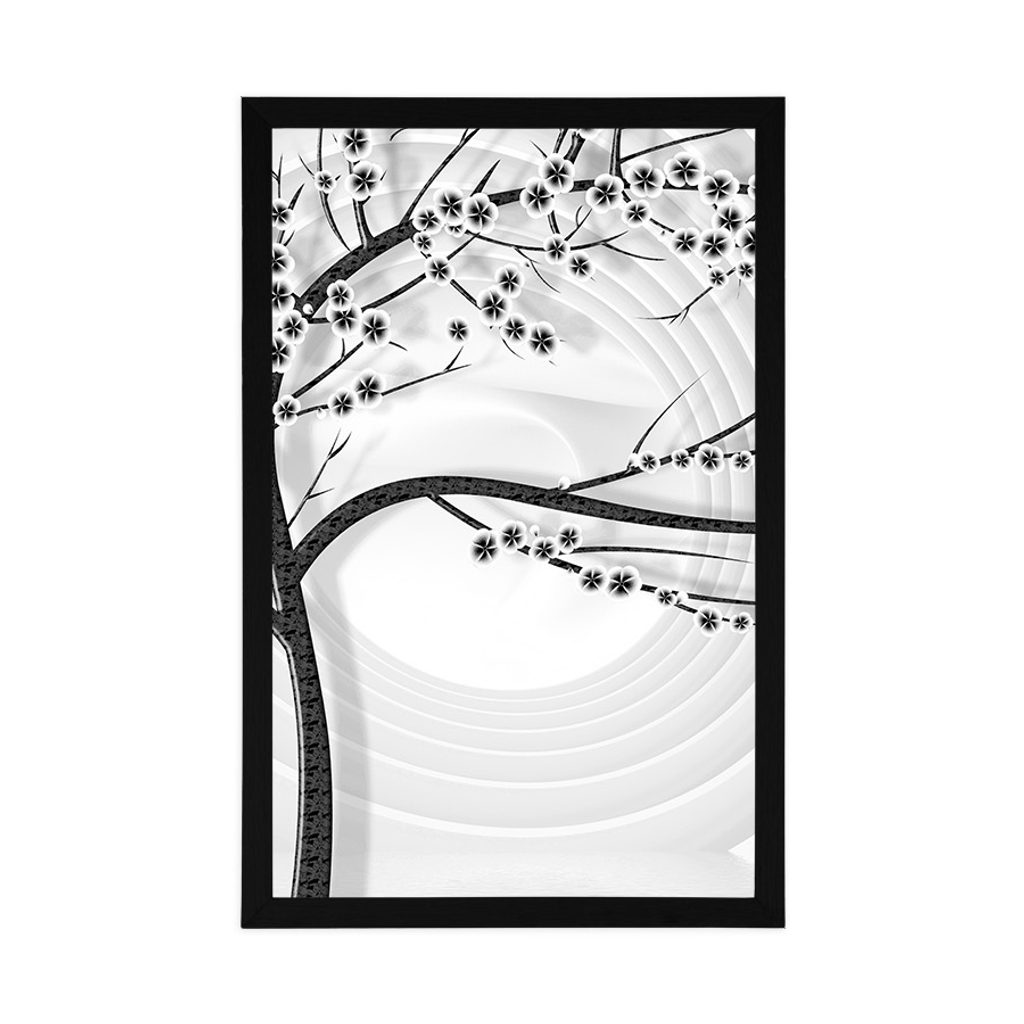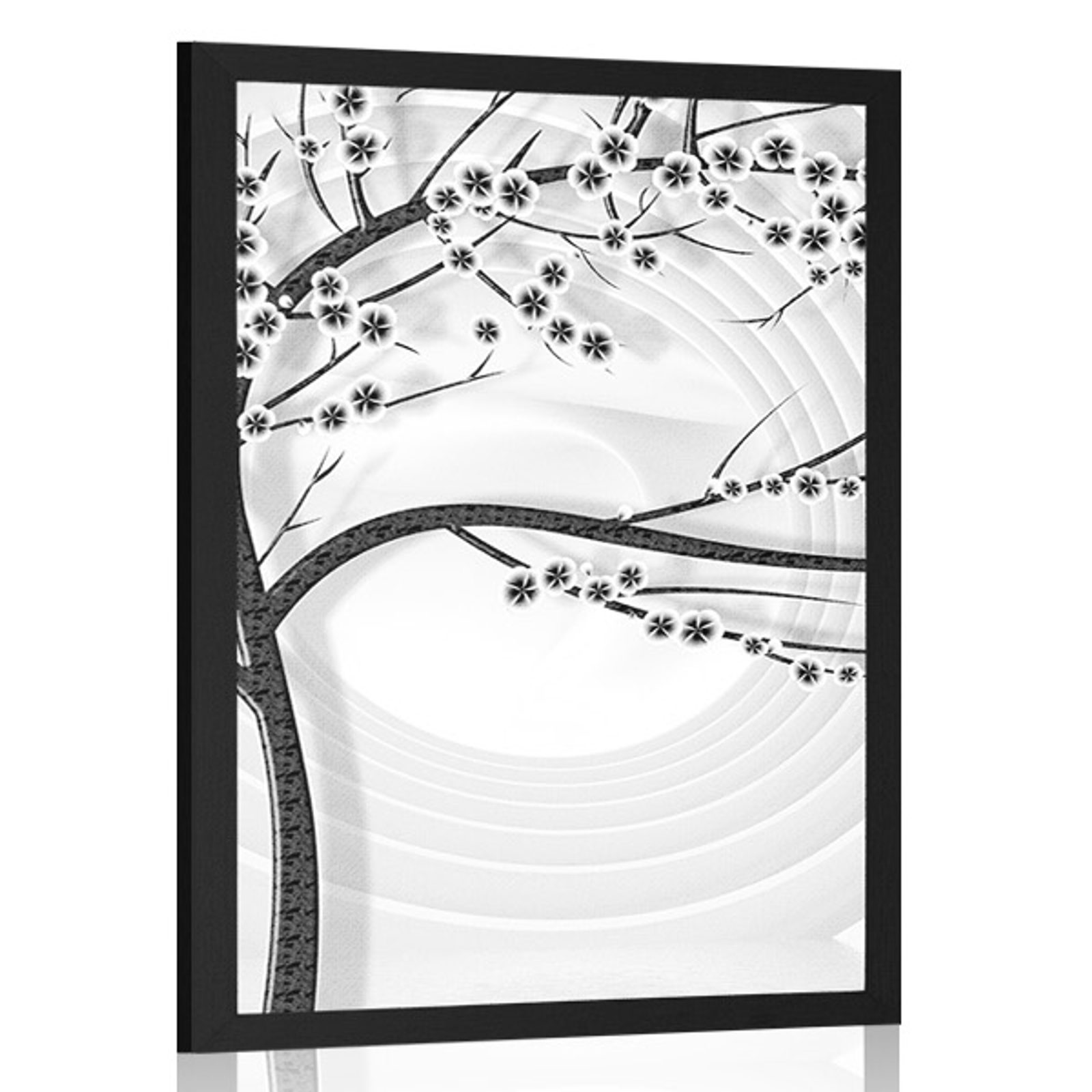 Plakat moderno crno-bijelo stablo na apstraktnoj pozadini