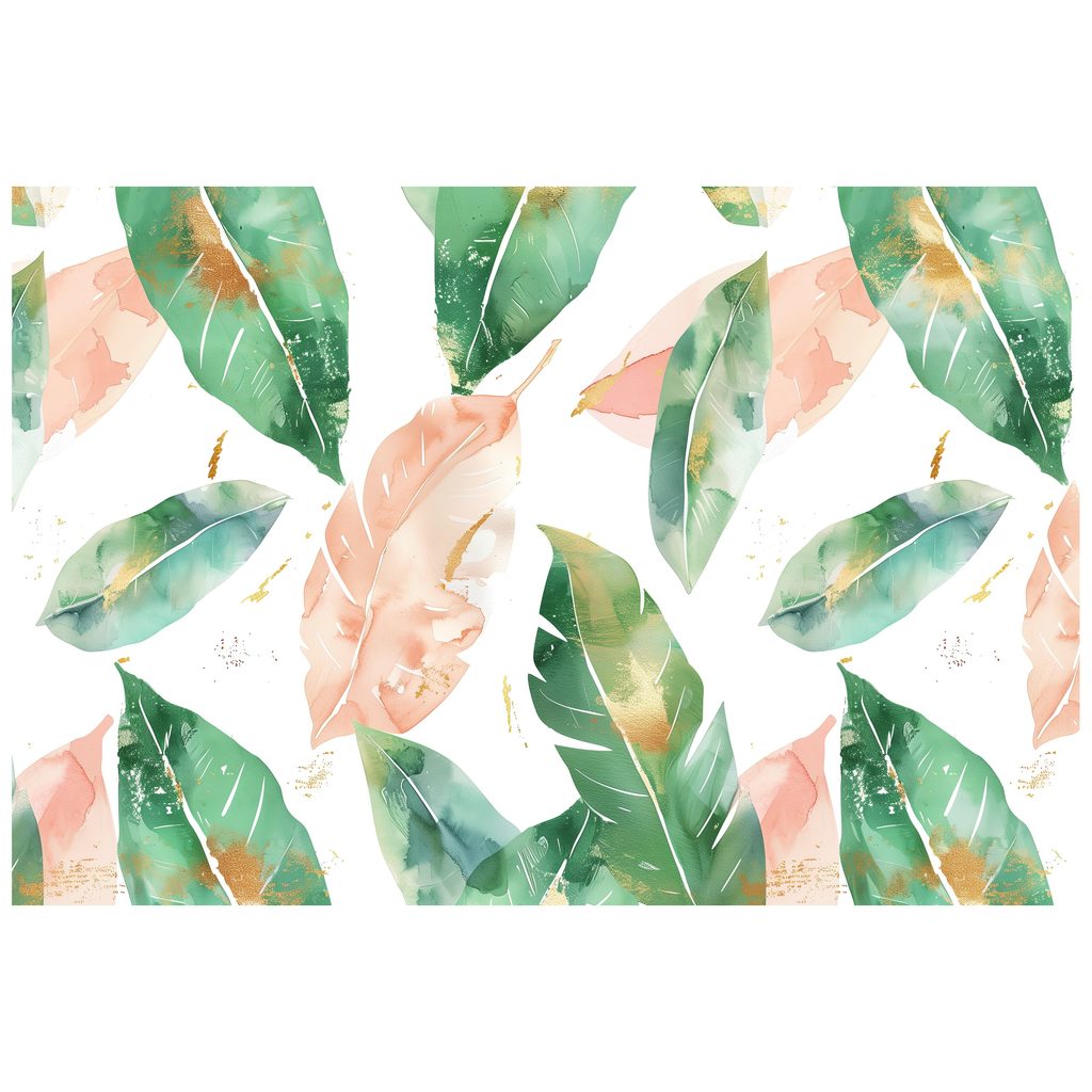 Samoljepljiva tapeta listovi zelene boje i boje breskve u tehnici akvarela