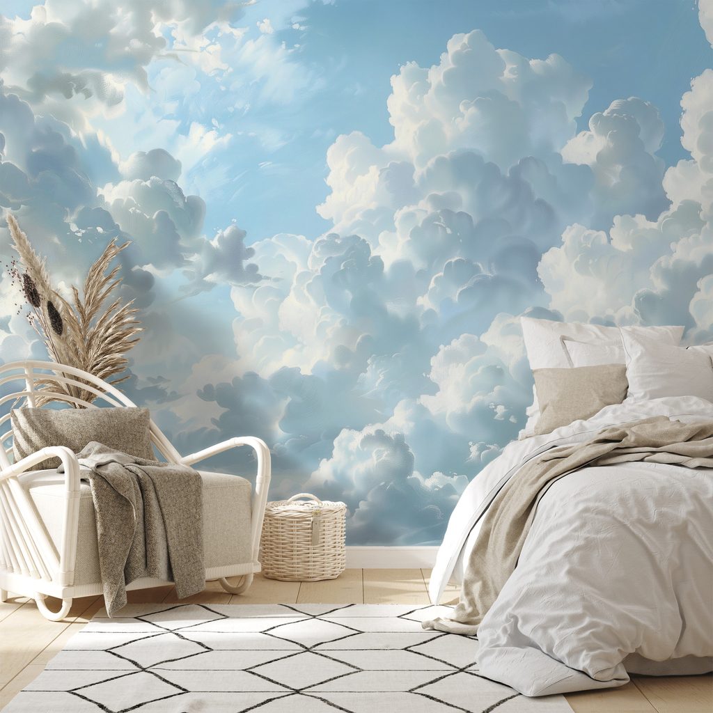 Tapeta pahuljasti bijeli oblaci na plavom nebu