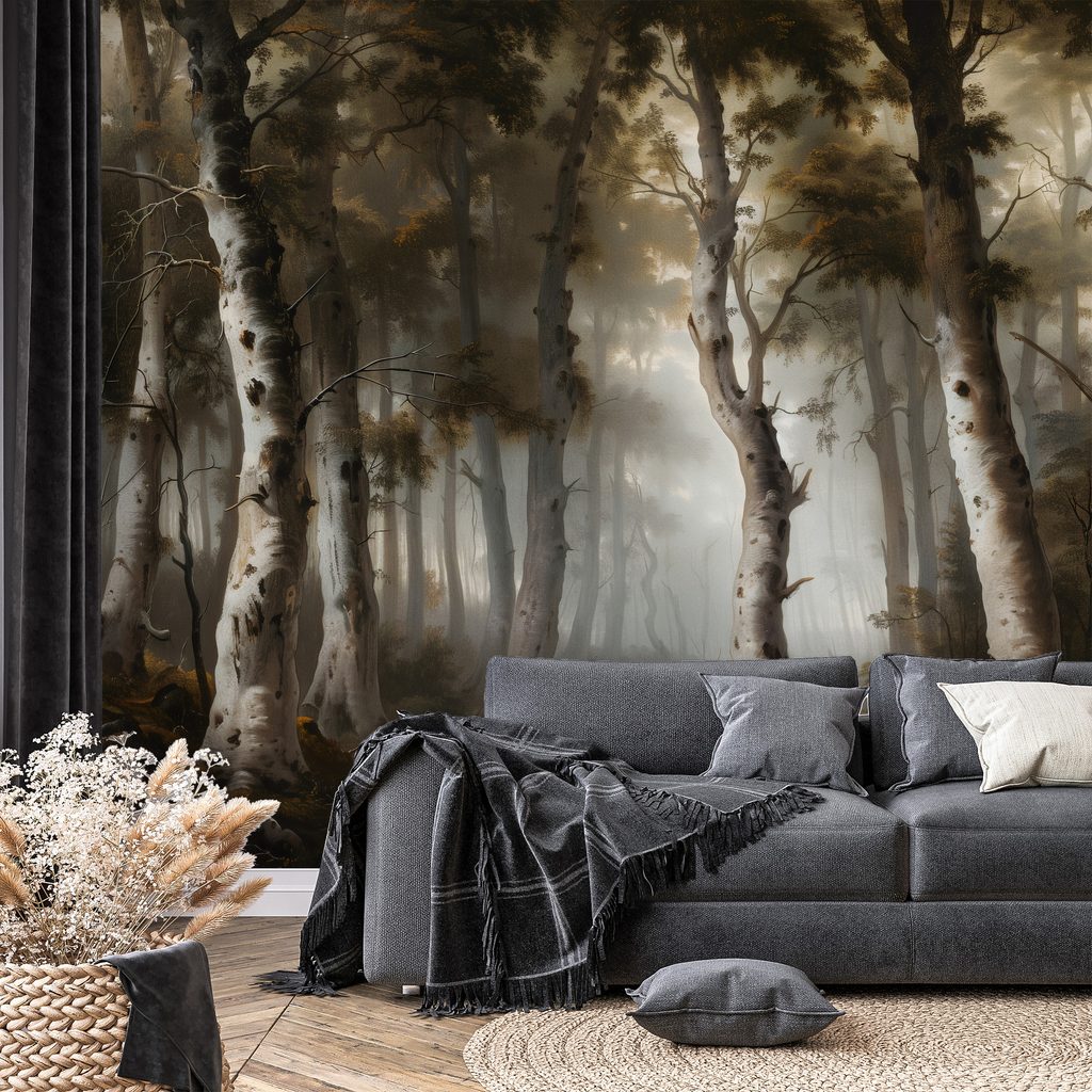 TAPETA ŠUMSKA MAGLA U SIVIM TONOVIMA - TAPETE ŠUMA - TAPETE